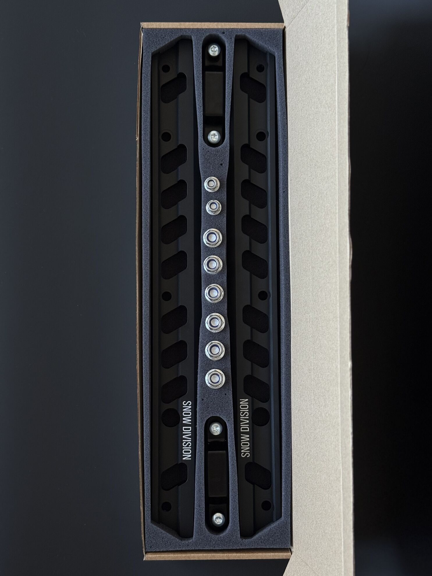 Усилитель рельс Snow Division Rail Brace выполнен из прочного авиационного алюминия 6061-T6 и имеет чёрное матовое твёрдое покрытие (холодное анодирование).